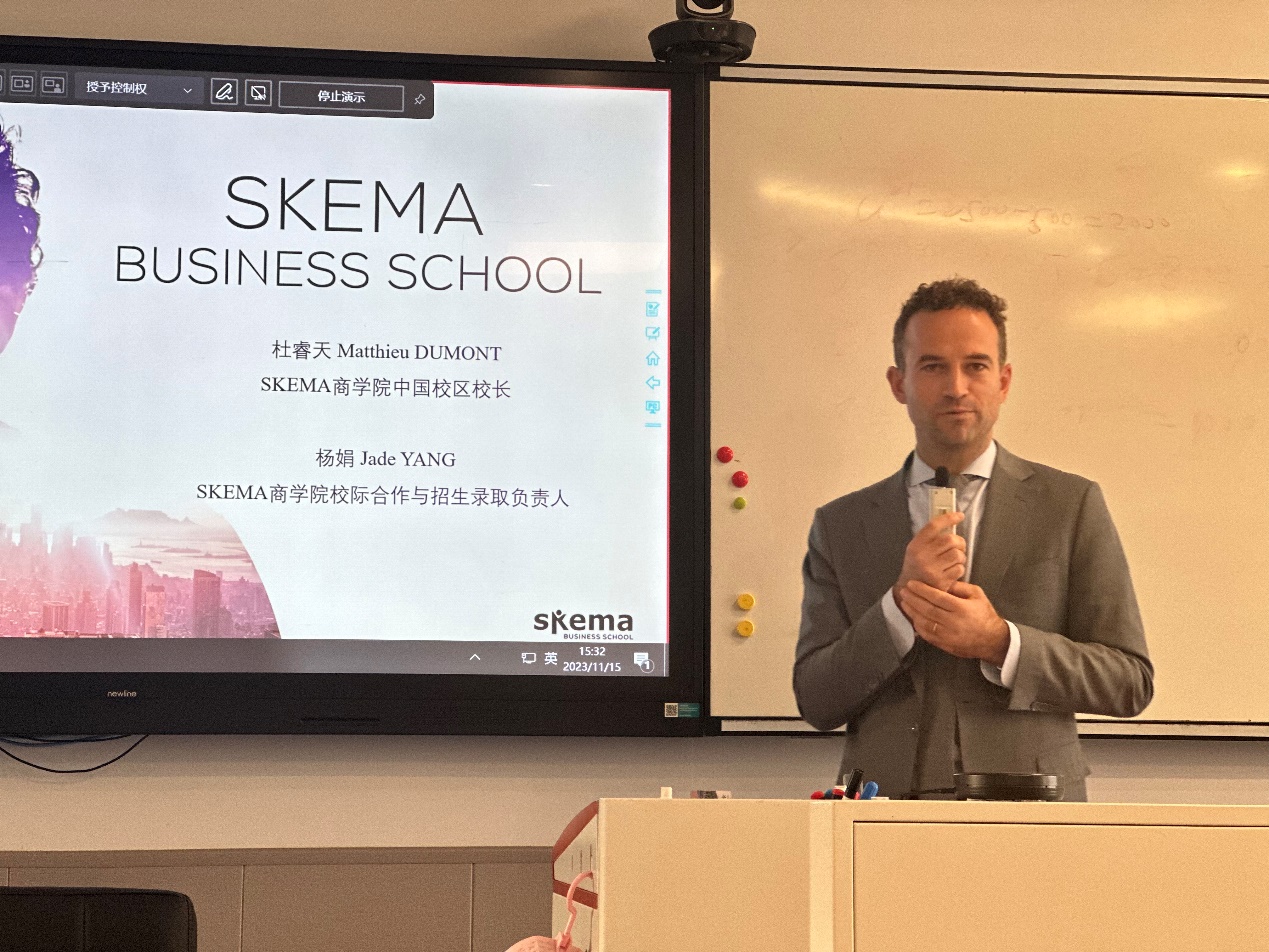 11月15日,yd云顶集团官网特邀SKEMA商学院中国校区校长Matthieu Dumont、SKEMA商学院中国区校际合作&招生经理杨娟老师召开硕士项目宣讲会,就法国留学优势、SKEMA商学院办学成就、优秀校友经验分享等四个方面与学生开展交流。宣讲会由学院党总支书记江振春主持。